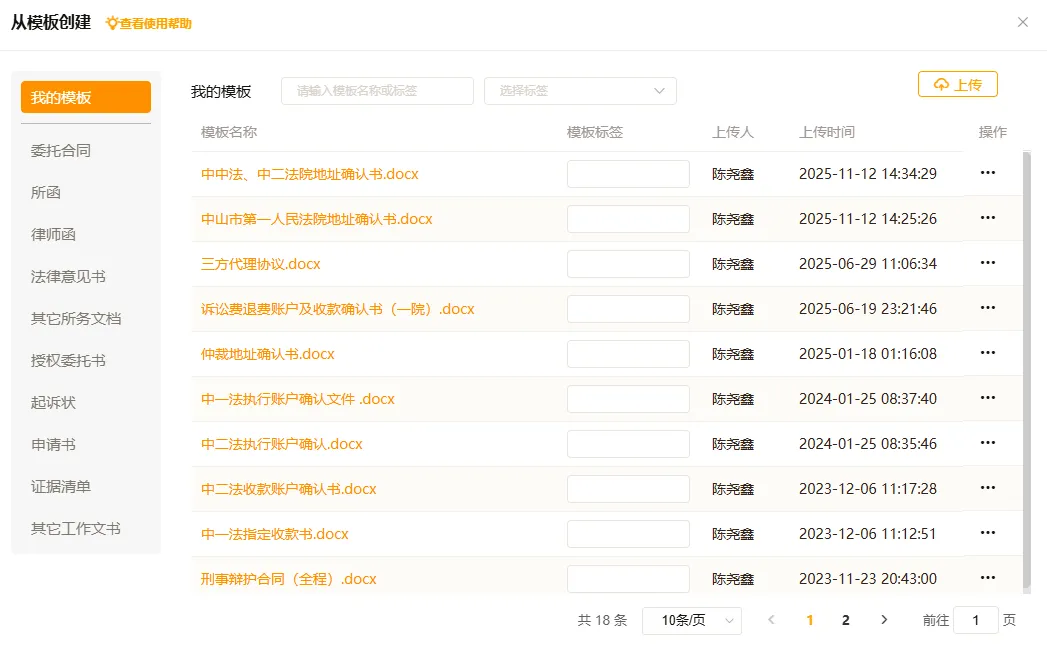 案件云的文书模板功能彻底解决了这一痛点。通过系统字段参照表或自定义字段功能,可将当事人名称、联系方式、标的额等常用信息设置为固定字段代码。