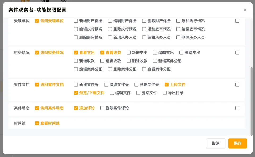 风控专员(可通过自定义角色实现)是律所的"安全员"。