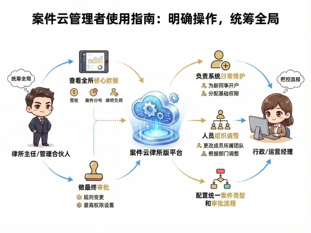 核心操作:统一配置全所的案件分类、文书模板和审批流程,确保工作规范有序。