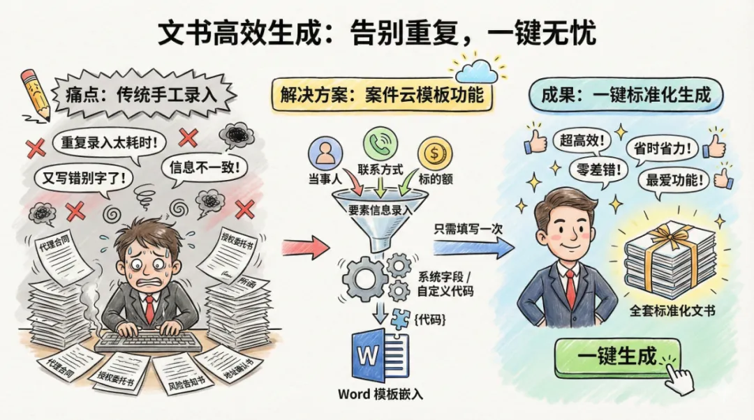 这类工作往往需要反复录入双方当事人信息,不仅耗时费力,还容易出现错别字等疏漏。