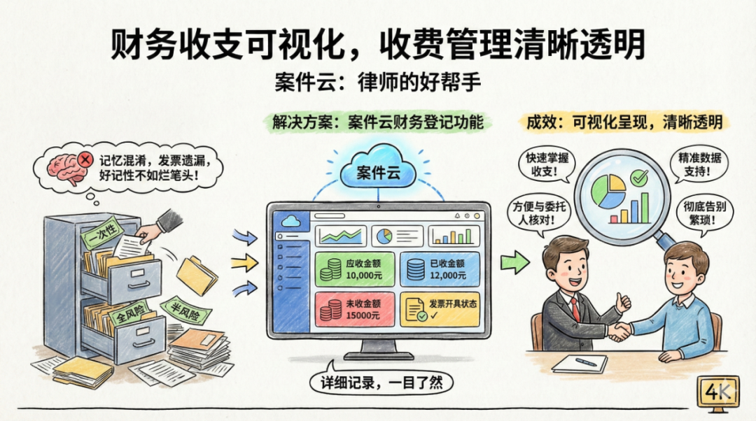 律师费是委托人选择律师服务的重要参考因素,律师行业常见一次性支付、分期付款、全风险提成、半风险提成等多种收费模式。面对大量案件时,仅凭记忆极易出现收费情况混淆、发票开具遗漏等问题。