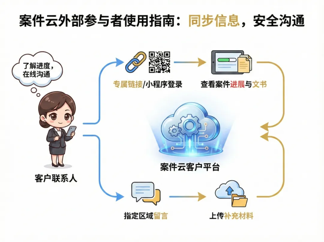 客户联系人(如公司法务)被纳入协作流程,成为透明的"参与者"。